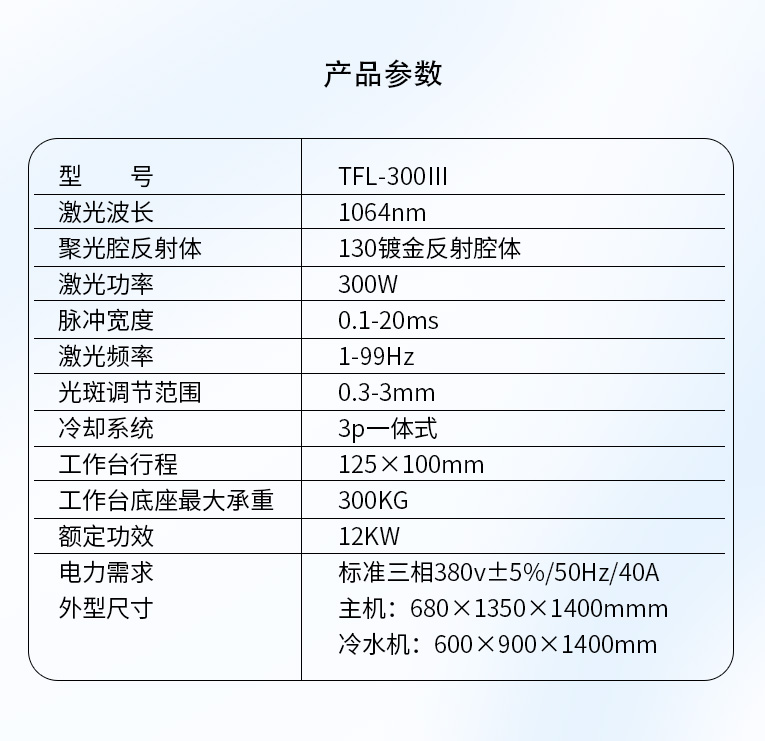 TFL-300Ⅲ型模具激光焊機是通發(fā)激光公司自主研發(fā)的一款大功率激光焊接機,采用通發(fā)自主研發(fā)的二代精密雙燈電源為燈泵浦驅(qū)動電源,配置觸摸屏,操作更方便。主機具備激光頭手搖升降與工作臺按鈕電動升降實現(xiàn)焊接不同厚度模具的激光焊加工。本款機型更適用于各類大功率、大面積激光修補的模具。由于激光功率大,同時可激光焊接鈹銅模具,鋁材模具或鋁材零件。在大面積激光修補模具時,可以使用更粗的焊絲,激光焊接效率大幅提升。