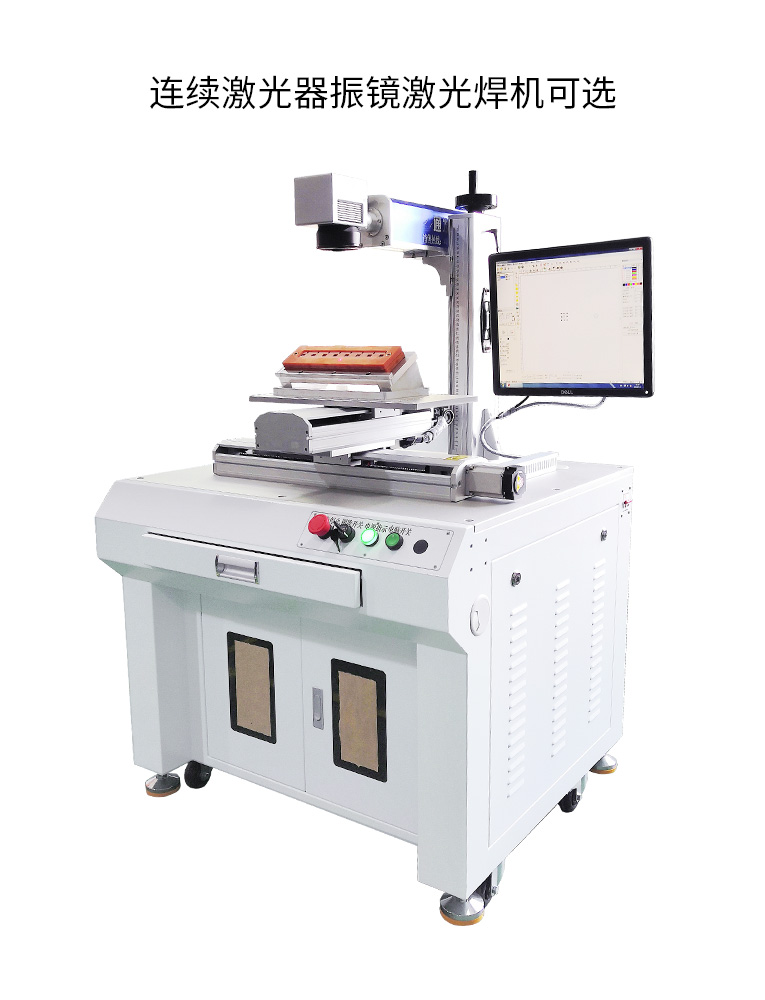 振鏡掃描激光點焊機是引進國外技術(shù),在關(guān)鍵部件采用優(yōu)質(zhì)進口部件生產(chǎn)而成的,焊機,使用了掃描鏡組的動態(tài)焊接工藝,并采用掃描鏡片的移動代替工件移動或焊接鏡組移動的方式,使振鏡鏡片在掃描鏡頭內(nèi)將激光光束快速在焊點之間切換,焊點之間的距離越大,工件上的焊點數(shù)量越多,優(yōu)勢越明顯。在單點焊接時由于極大的減少了空程定位時間,生產(chǎn)效率比普通XY工作臺的激光點焊要提高4—10倍。
