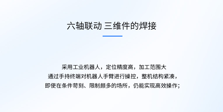 通發(fā)激光機械臂機器人激光焊接機,采用機械手六軸聯(lián)動,對三維件五金件進行3D精密焊接,非接觸式焊縫跟蹤系統(tǒng),多工位協(xié)調(diào)工作,可實生產(chǎn)智能化,自動化,省時省力更省工,全方位降低生產(chǎn)成本。